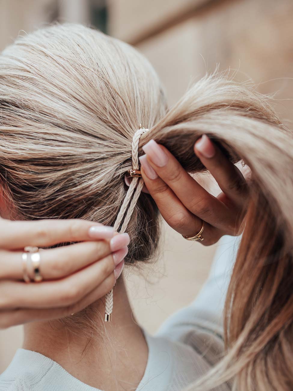 Für extra starken Halt: Wickle das Maivy Band 1x um Dein Haar & zieh es anschließend wie gewohnt fest.